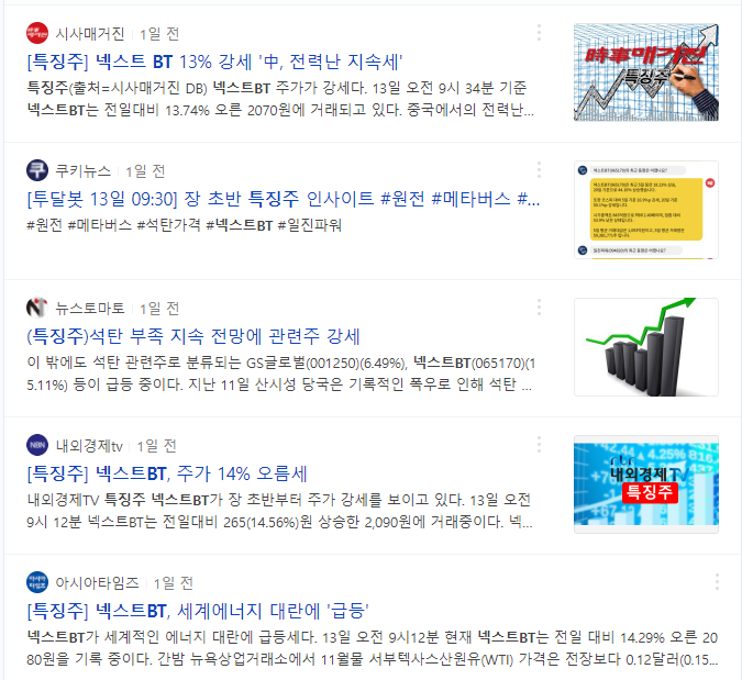 넥스트BT주가가 급등한 것 같다.