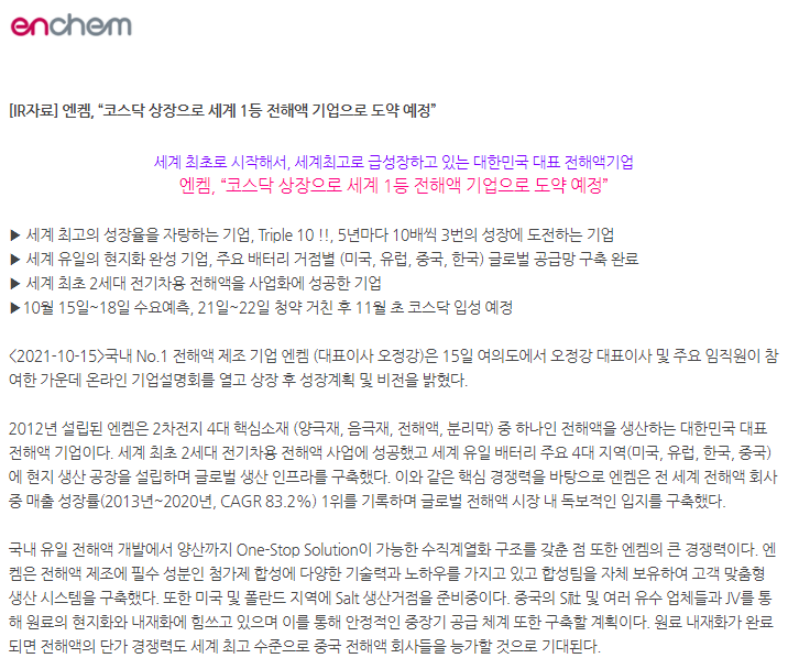 [공모주]엔켐 전해액